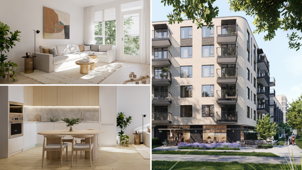 Residents enjoy a fitness centre, steam room, yoga and meditation room, music room, co-working space and indoor social lounge. Outdoors, you’ll find garden plots, a lawn for games, a children’s playground and a garden lounge with a fire bowl and BBQ.